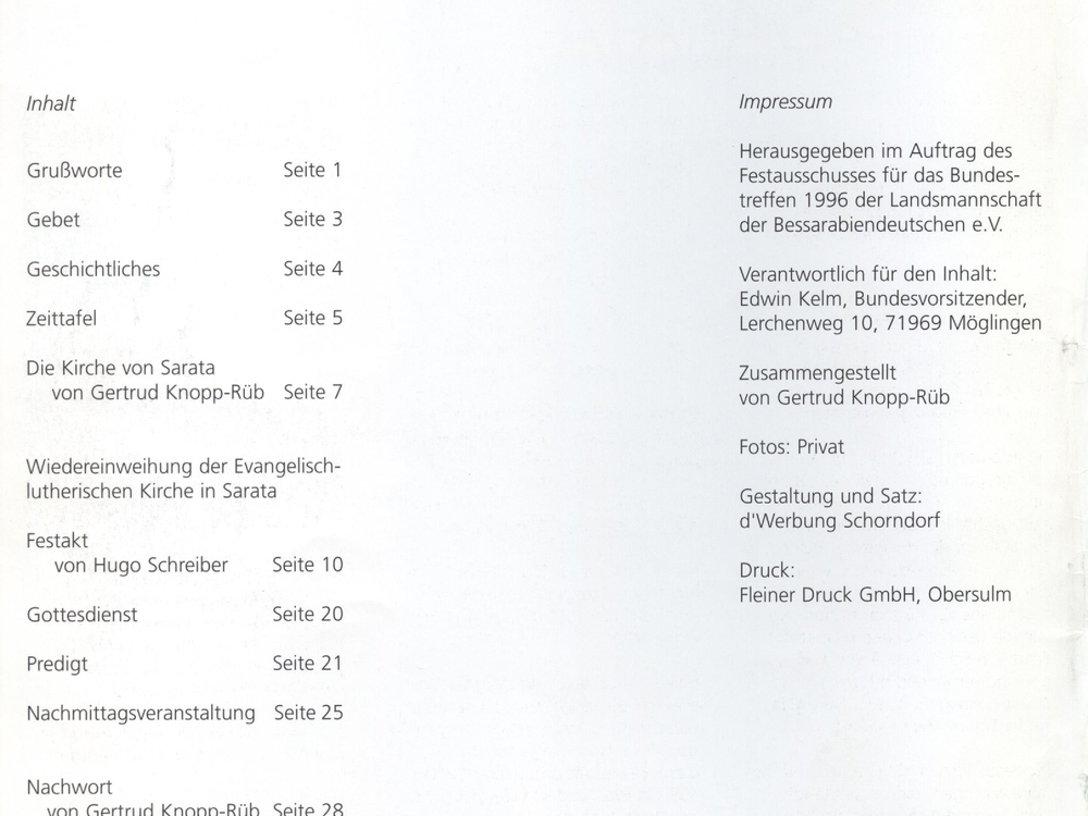 Die Kirche von Sarata (1996) Landsmannschaft Broschüren Die Kirche von Sarata (1996) Autor: Landsmannschaft Artikelnummer: 1283 Preis: 2,50 € Anzahl: In den Warenkorb Voriges Bild Nächstes Bild