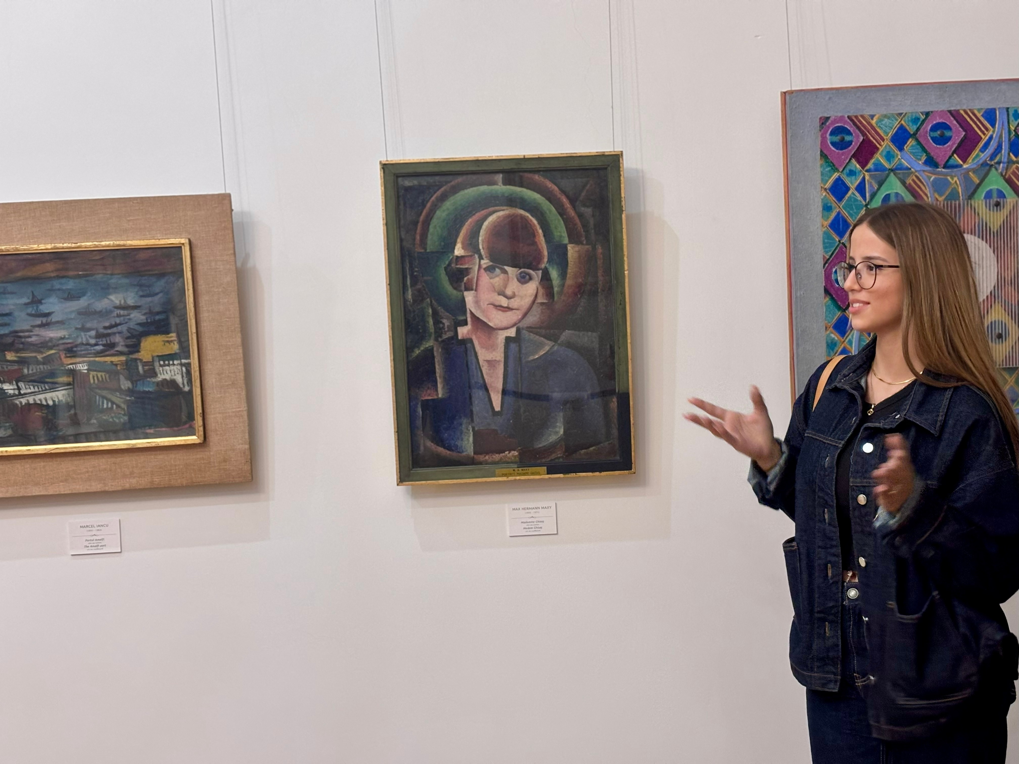 Dr. Heinke Fabritius, die Kulturreferentin, führte uns fachkundig in die Ausstellung ein. Anschließend erkundeten wir eigenständig die Sammlung auf der Suche nach Kunstwerken, die thematisch zu unseren Projektthemen passten, und diskutierten unsere Beobachtungen im Plenum.
