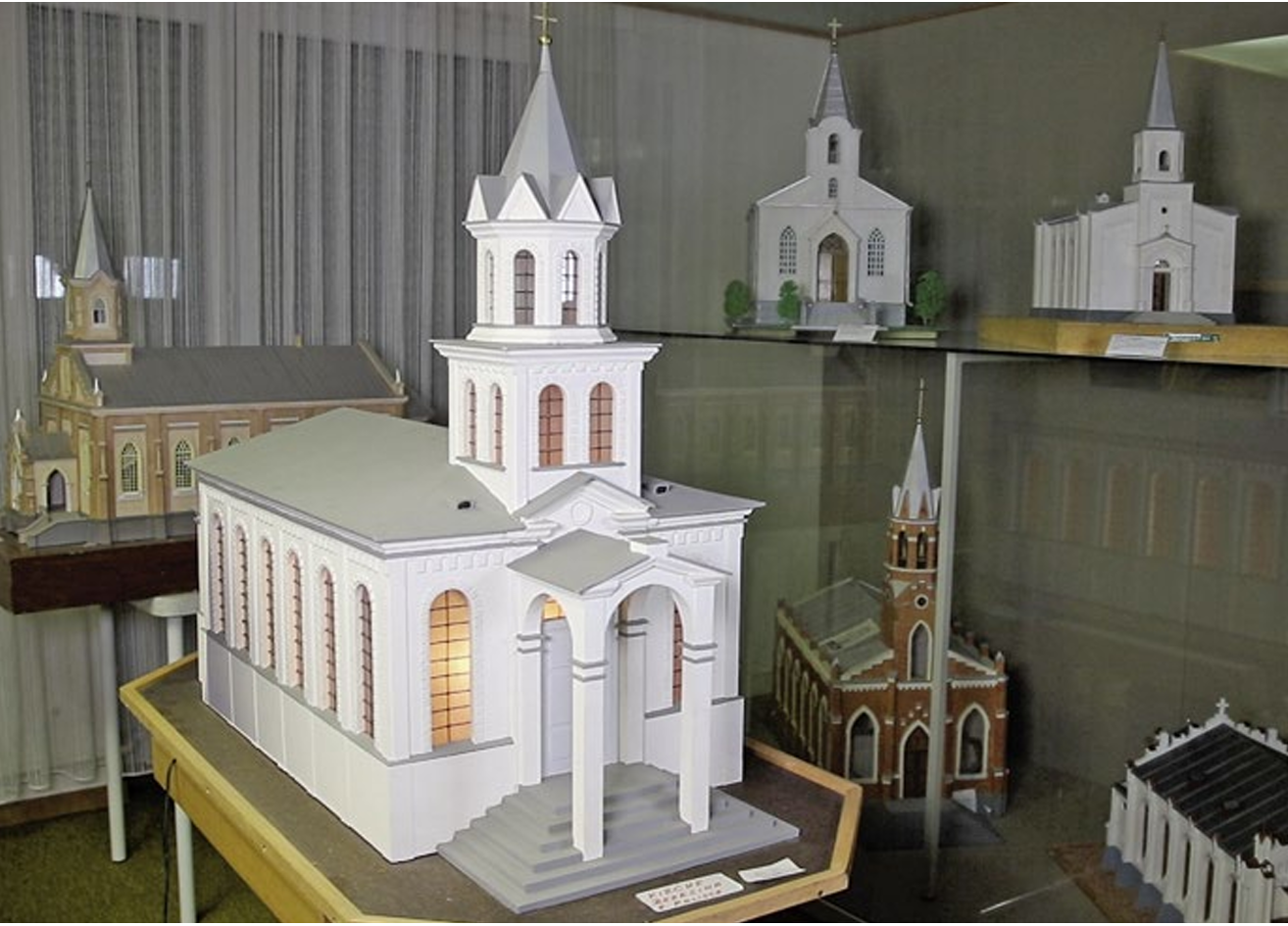 Das Modell der Kirche von Beresina ist detailreich und handwerklich sehr sauber gearbeitet. Gefertigt wurde es vom Großvater von Michael Gaertig, Herbert Kalisch, der es später dem Heimatmuseum stiftete. Aufgrund seiner Größe stand das Kirchenmodell lange Zeit im Magazin des Hauses und ist im Inventarverzeichnis vermerkt unter der Nummer 2288 als „Modell der Kirche von Beresina“.