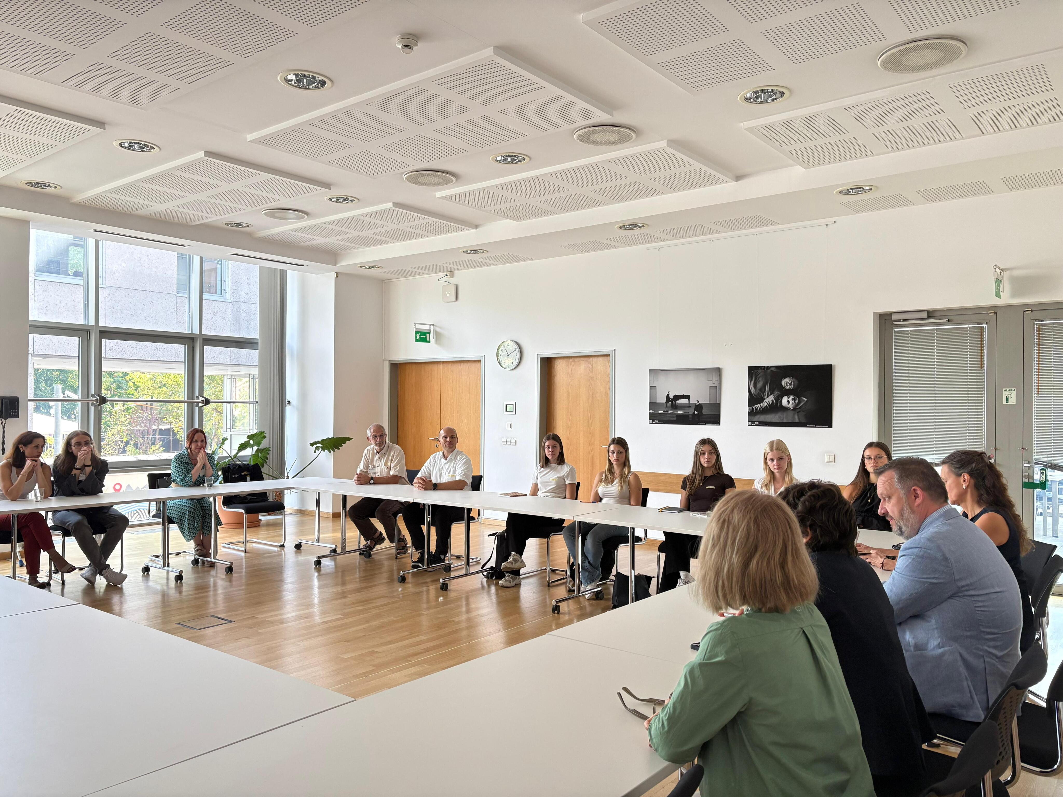 Unser erstes Ziel war die Deutsche Botschaft, wo wir vom ständigen Vertreter Markus Teglas herzlich empfangen wurden. Besonders beeindruckend war die offene und lebendige Atmosphäre: Statt eines rein frontalen Vortrags entwickelte sich eine spannende Diskussion über Politik, Wirtschaft, Kultur und Bildung.