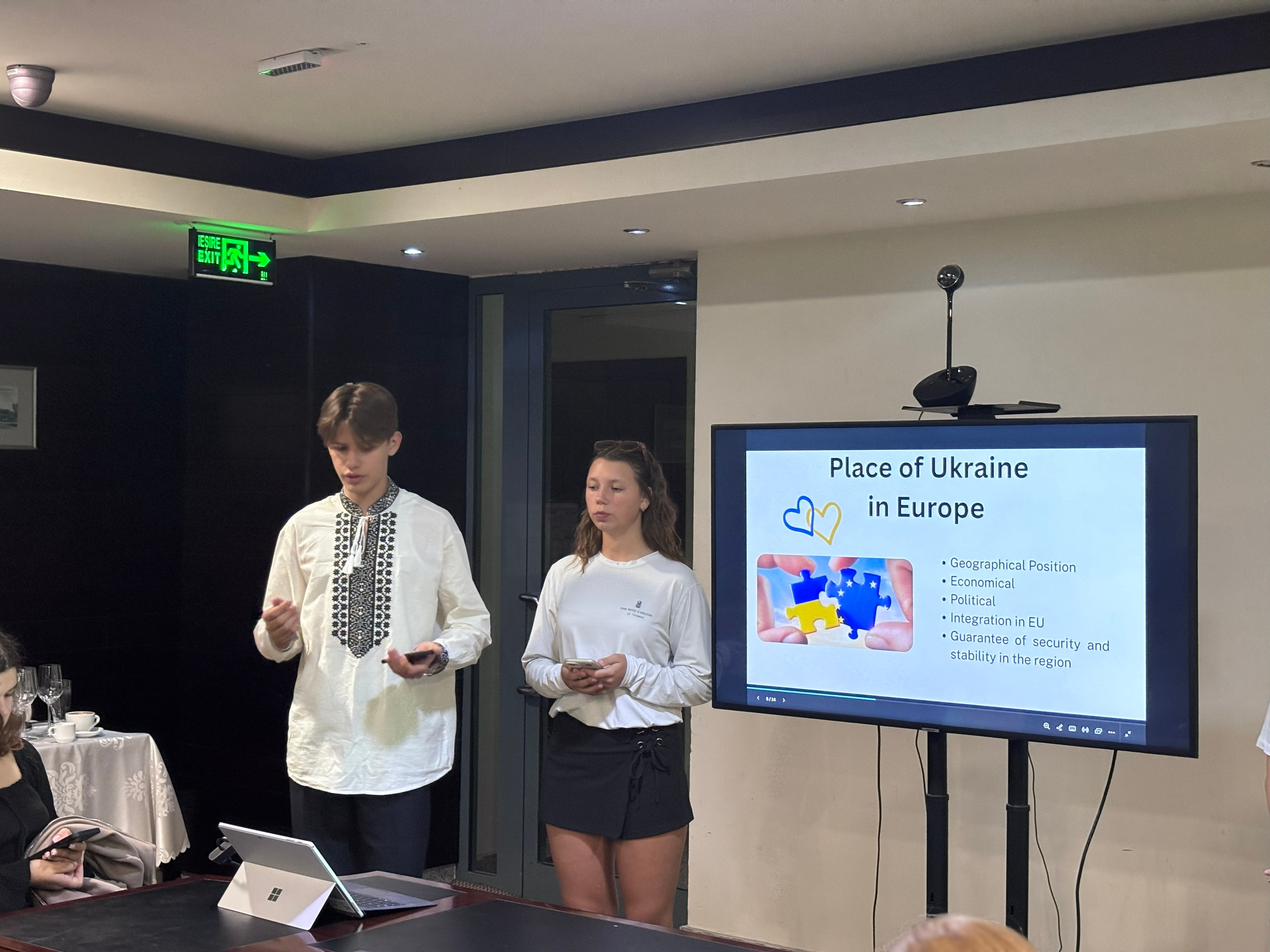 In der anschließenden Arbeitsphase wurde es ernsthafter: In gemischten Gruppen beschäftigten wir uns mit Themen wie Umweltschutz, Europa, Krieg und Migration. Innerhalb einer Stunde entstanden drei tolle Präsentationen, in denen die unterschiedlichen Perspektiven – deutsch, rumänisch und ukrainisch – sichtbar wurden. Die Diskussionen waren lebendig, respektvoll und inspirierend.
